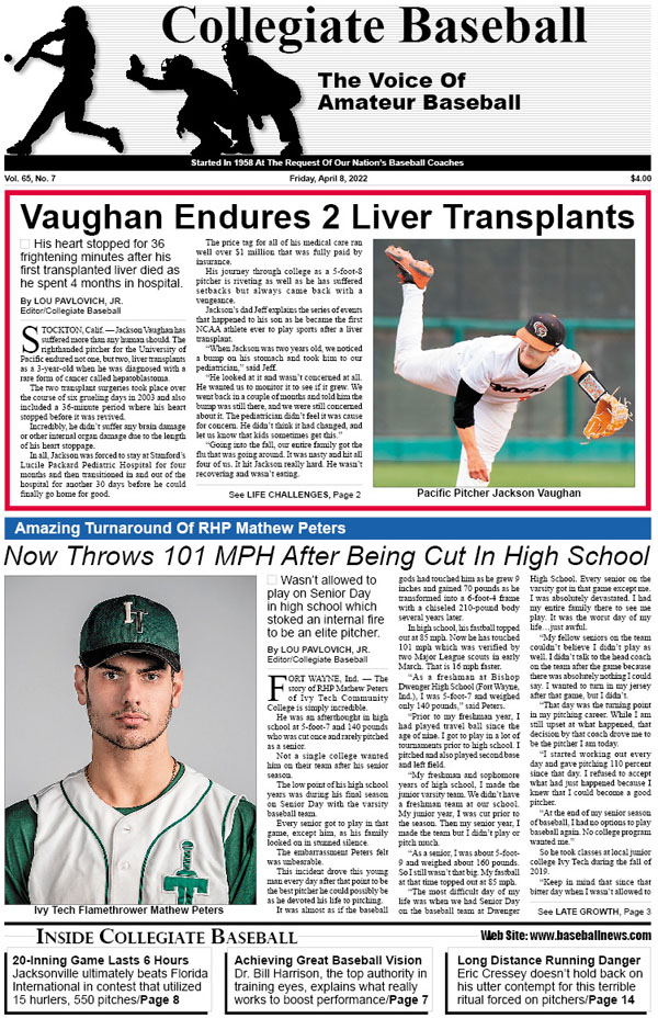 • Now Throws 101 MPH After Being Cut In High School: Mathew Peters of Ivy Tech. C.C. wasn’t allowed to play on Senior Day in high school which stoked an eternal fire to be an elite pitcher.