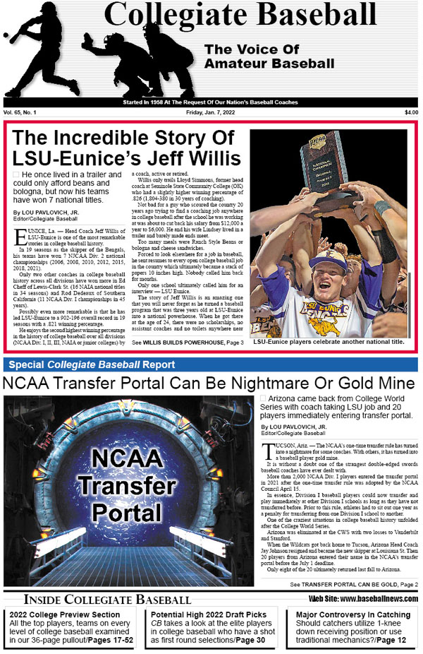 • Special 2022 College Preview Section: CB takes a look at all the top teams as well as players on every level of college baseball in 36-page section.