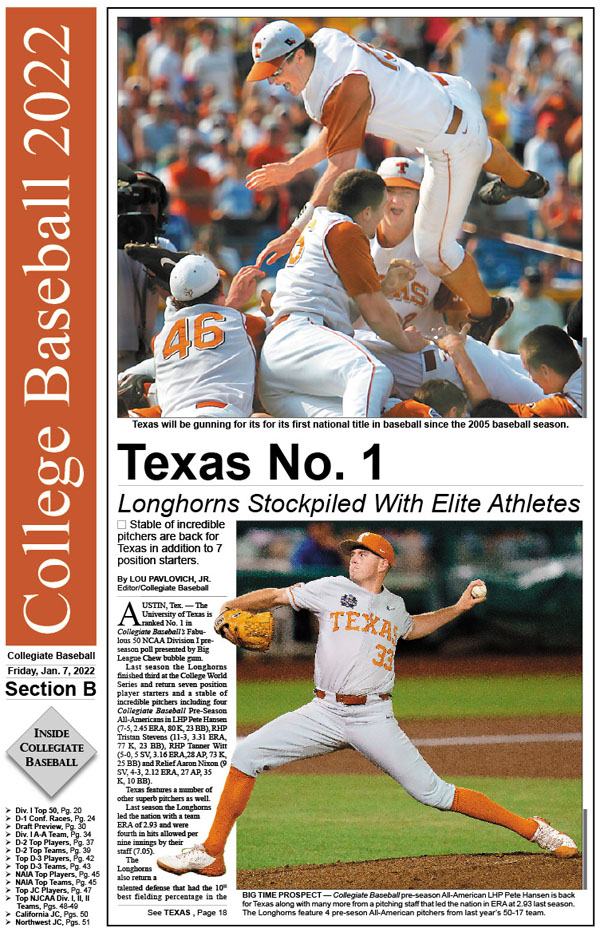 • NCAA Div. I Collegiate Baseball Pre-Season All-Americans: 81 first, second and third team pre-season All-Americans are featured heading into 2022 season.