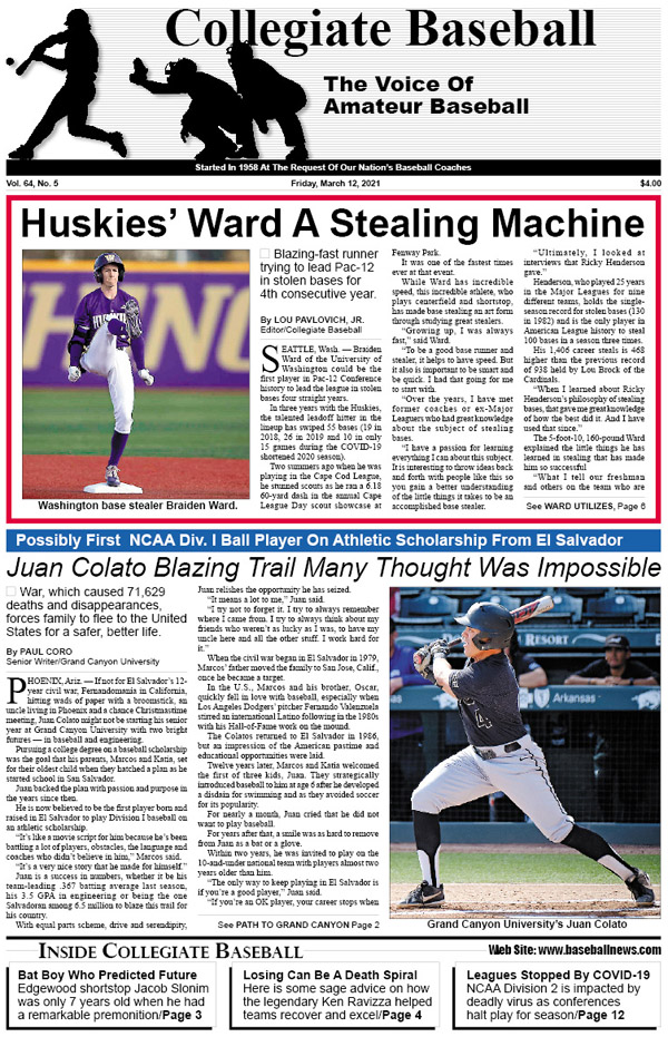 • Huskies’ Braiden Ward A Stealing Machine: Blazing-fast runner trying to lead Pac-12 in stolen bases for 4th consecutive year.