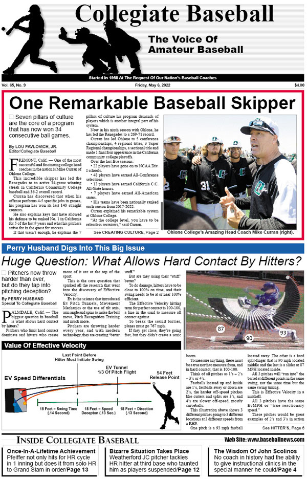 • One Remarkable Baseball Skipper: Seven pillars of culture are the core of Ohlone College’s amazing head coach Mike Curran.