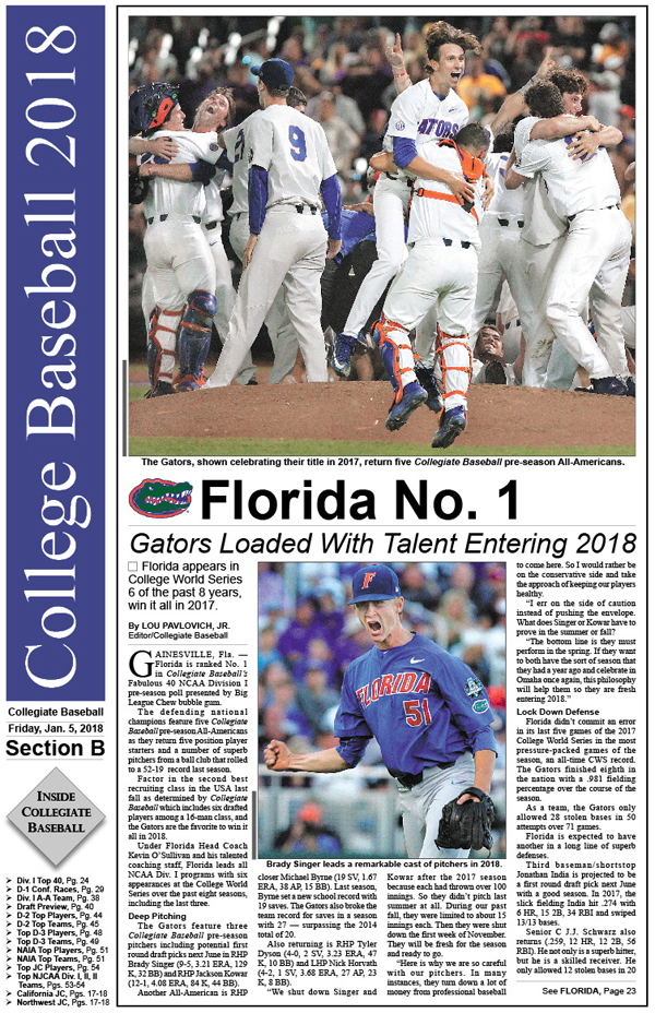 • NCAA Div. I Collegiate Baseball Pre-Season All-Americans: 81 first, second and third team pre-season All-Americans are featured heading into 2018 season.