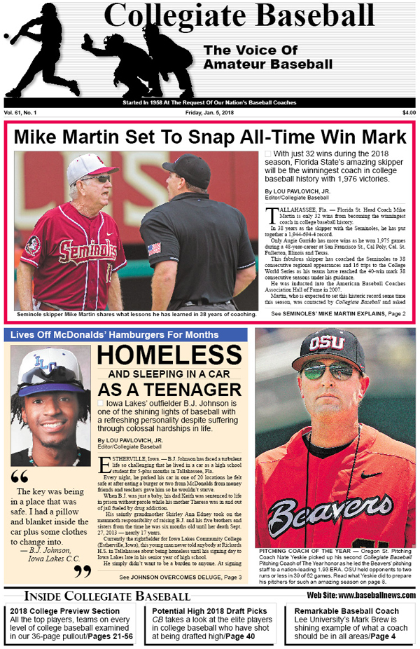 • Mike Martin Set To Snap All-Time Win Mark: Florida St. skipper is just 32 wins from becoming the winningest coach in college baseball history with 1,976 victories. Read about what he has learned during his 38-year journey as a head coach.