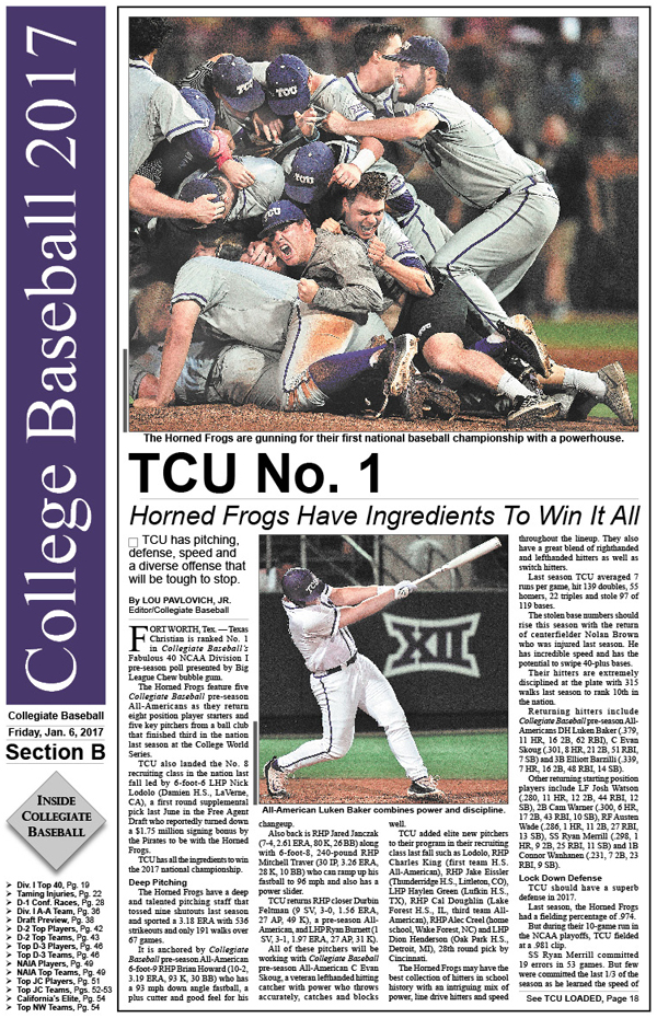 • Special 2017 College Preview Section: CB takes a look at all the top teams as well as players on every level of college baseball in 40-page section.