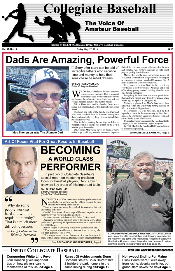 • SPECIAL REPORT: Becoming A World Class Performer: In part 2 of Collegiate Baseball’s in-depth look at mastering precision focus for baseball players, Geoff Colvin answers key areas of this important topic.