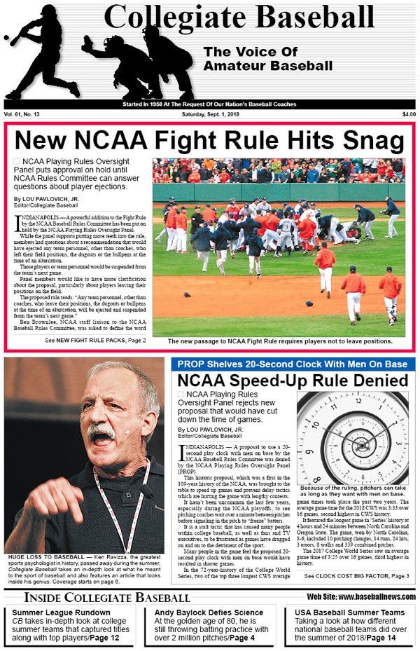 To purchase the Sept. 1, 2018 edition of Collegiate Baseball or subscribe, CLICK HERE.