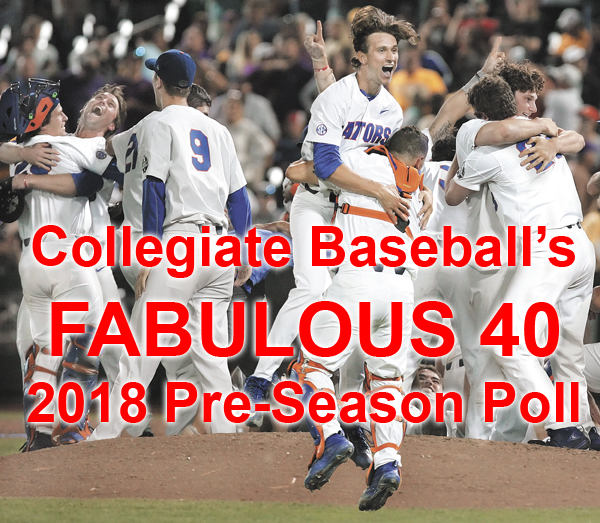 An in-depth story about why Florida is ranked No. 1 is in the Jan. 5, 2018 edition of Collegiate Baseball which is now available along with a rundown on the top 40 NCAA Div. I teams in the USA. To purchase this issue or subscribe, CLICK HERE.