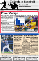 Mississippi State: The Bulldogs lead all College World Series teams with a .297 batting average after three games with five doubles, one home run and 14 runs scored. The pitching staff has a 2.33 ERA after three games and only allowed seven earned runs. But the bullpen has been special as it has only allowed two runs in 14 1/3 innings. The defense has committed three errors in three games with four double plays and only allowed one stolen base. Mississippi St. came from behind to win its first two games of the College World Series in its bracket (5-4 over Oregon St., 5-4 over Indiana) but never trailed in a 4-1 win over Oregon St.